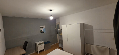 Op de 1ste etage aan de achterkant van het object gelijk ook gelegen aan het grote balkon is deze toffe kamer die ook nog deels gemeubileerd is.