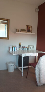 Alle gezamenlijke voorzieningen zijn in goede staat. De ruime eetkeuken, douche, toilet en tuin deel je met 5 vrouwelijke medebewoners.