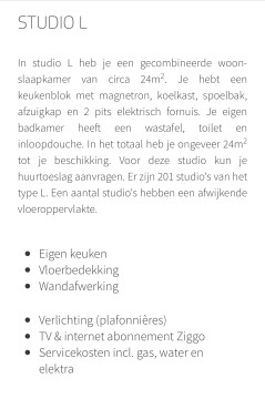 Door een stage kan ik geen gebruik maken van mijn studio: zelfstandige woonruimte, kamer met keuken en badkamer (douche en toilet), huur 500 euro per maand incl. Voor onderhuur heb ik een toestemmingsformulier onderhuur en zal er een waarborgsom moeten worden betaald (€.500,-). Jij als onderhuurder moet een verklaring student voor het studiejaar 2022-2023 hebben.