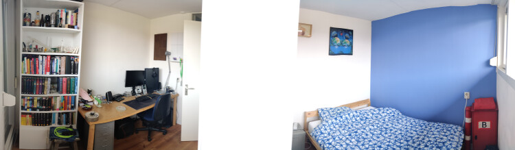 Wat betreft de kamer, het gaat om een kamer van ongeveer 14 m2 met een balkonnetje eraan van ongeveer 2 m2. Het huis zelf is 115 m2 met de gezamenlijke ruimte in de vorm van een keuken, eet/woonkamer, badkamer(met bad!) en een tuin. Verder zijn er 2 wc’s en is er ook wat opbergruimte beschikbaar. De huur is 650 euro(inclusief) per maand.