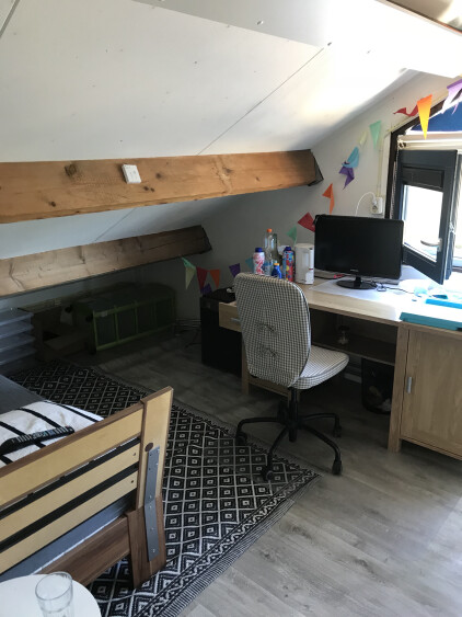 Alle gezamenlijke voorzieningen zijn dan ook nog in goede staat. De ruime eetkeuken, douche, toilet (2 stuks) en tuin deel je met 5 vrouwelijke medebewoners.