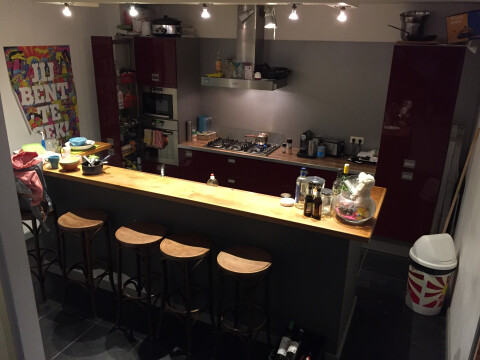 De kamer heeft een oppervlakte van 13m2 en beschikt over een opbergzolder. Zoals je kunt zien op de foto's is er een ingebouwde kast aanwezig met planken, handig om je kleding op te bergen. Het huis beschikt over een zeer uitgebreide keuken inclusief bar, vaatwasser, oven, magnetron, koelkast en 6 gas pitten. Verder hebben we een wasmachine + droger gehuurd, de extra kosten hiervoor zijn 7 eu p/maand.