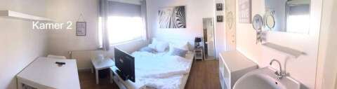 Kamer op de 1e verdieping van ongeveer 14m2 met een ingebouwde kledingkast, wasbak en verder geheel gemeubileerd (zie foto’s)